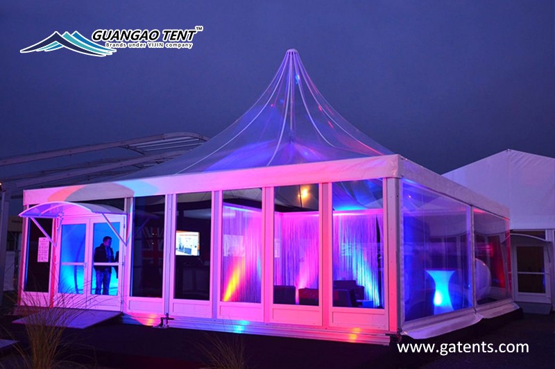 The apex tent of Guangao tent manufacturer is completely easy to disassemble, can be quickly installed in a very short period of time, has a service life of more than 20 years, complete indoor facilities, stable and durable tent structure, and no site restrictions.